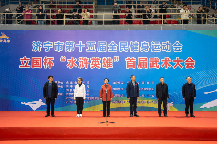 本次大会由济宁市体育局、济宁市体育总会主办,济宁市全民健身广场管理服务中心、济宁市武术运动协会承办,济宁立国集团协办。开幕式上,山东省武术院党总支副书记朱勇,济宁市人大常委会原副主任、一级巡视员、市精品旅游促进会会长陈颖,济宁市体育局党组书记、局长卢静,济宁市体育局一级调研员邵波,济宁市体育局党组成员、副局长孙延斌,济宁市立国集团董事长王成国等领导出席。陈颖宣布首届武术大会开幕,现场气氛瞬间被点燃。