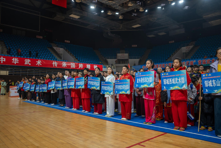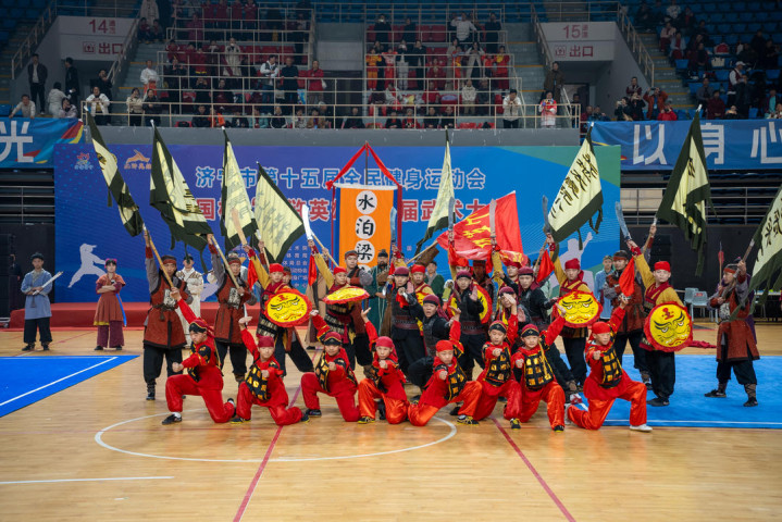 11月1日至2日,济宁体育中心综合体育馆内热闹非凡,刀光剑影闪烁、拳风呼啸作响,济宁市第十五届全民健身运动会“水浒英雄”首届武术大会在此激情上演。来自全市各县(市、区)的101支代表队、1740余名武术爱好者齐聚一堂,以武会友,共同奔赴一场传承千年水浒文化的武术盛宴。